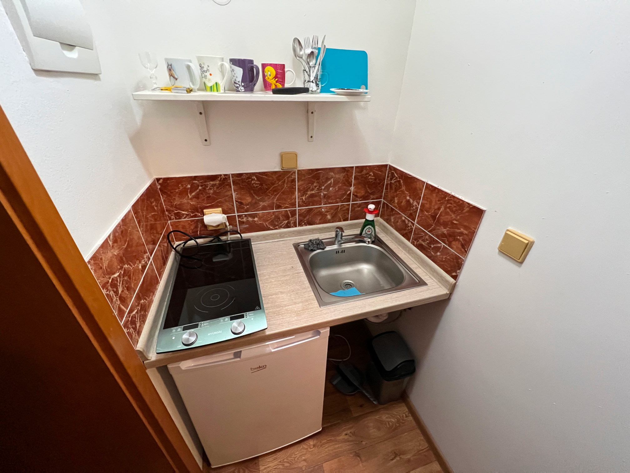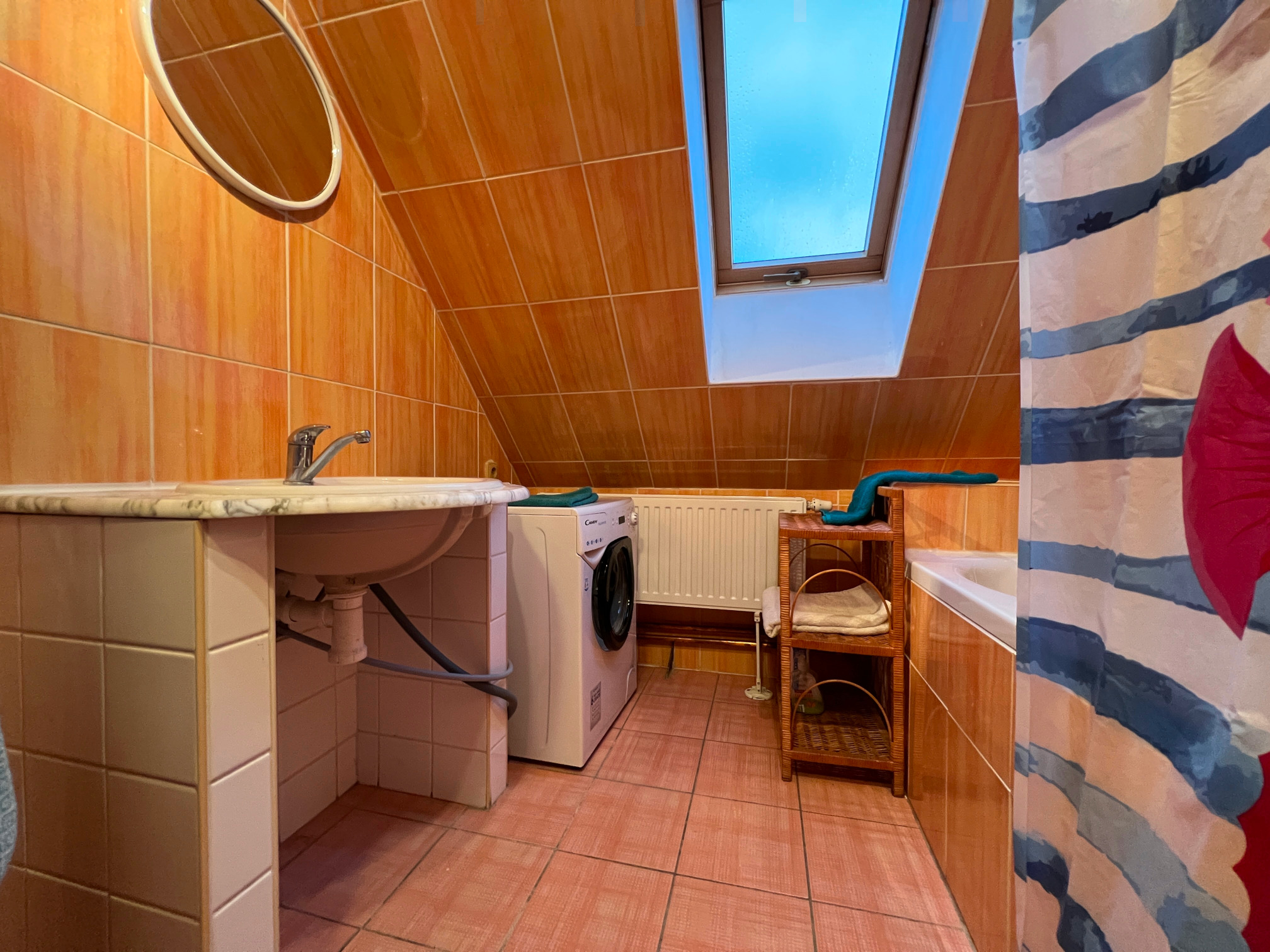 Vybavení: kuchyňský kout, lednice,vařič, rychlovarná konvice, mikrovlnka, pračka, smart televize, sprchový kout i vana.